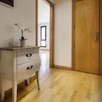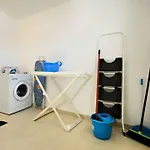 El Estudio De Lela的房间内有微波炉,冰箱和洗衣机. Visanta巴士站距离公寓不远,走路只需5分钟就到了.